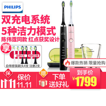 Philips飞利浦 钻石亮白型声波震动 电动牙刷 钻石系列黑钻+粉钻 HX9352+HX9362 2支装