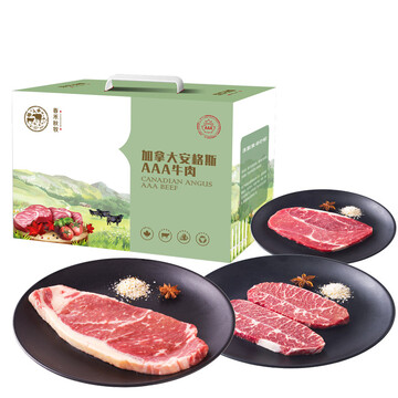 京东商城 【春禾秋牧牛排套装1200g】春禾秋牧 进口原切雪花牛排套餐6片装(西冷2、板腱2、上脑2) 1.2kg/盒 加拿大AAA级长期谷饲安格斯牛 含料包 牛排礼盒_海淘网