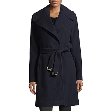 【美国亚马逊】 Diane Von Furstenberg DVF Nikki Black Wool belted Wrap Coat: Clothing