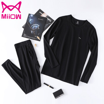 【京东商城】 【猫人秋衣秋裤】猫人(MiiOW)棉莱卡情侣保暖内衣男女薄款基础打底秋衣秋裤套装 黑色-男XL 男款-黑色