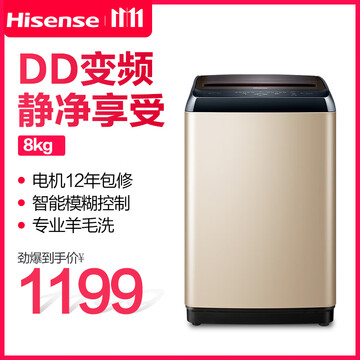 【京东商城】 海信(Hisense)8公斤 DD直驱变频全自动波轮洗衣机 智能模糊控制 一键智洗 羊毛 羽绒洗XQB80-H6326DG