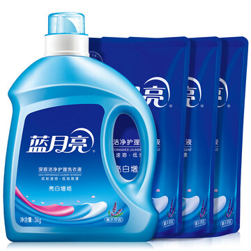 京东商城 【蓝月亮洗衣液】蓝月亮 亮白增艳洗衣液12斤套装(薰衣草亮白3kg瓶+薰亮白袋1kg3袋)_海淘网
