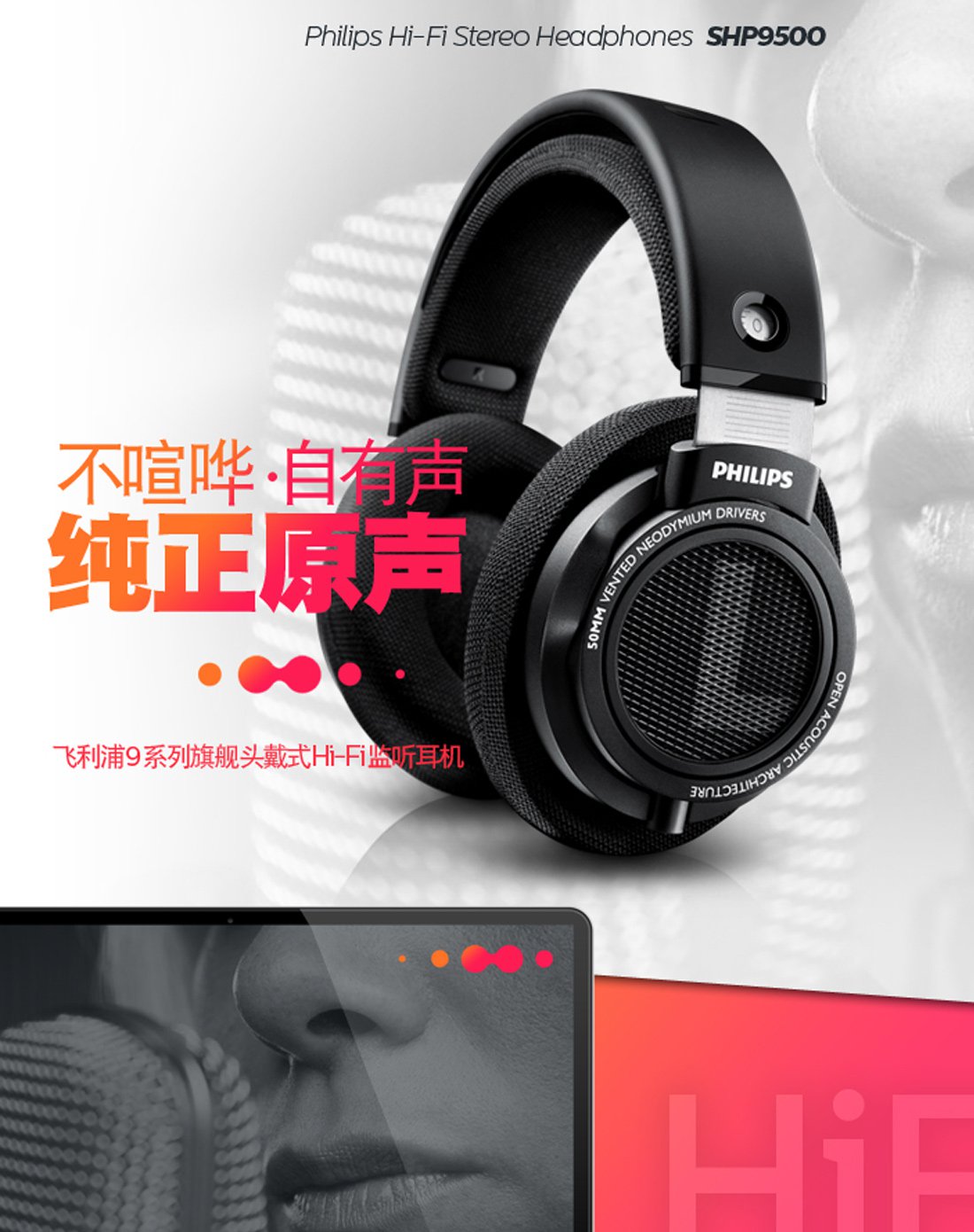 【飞利浦SHP9500/00】飞利浦(PHILIPS)HiFi头戴立体声耳机 烧友利器 SHP9500