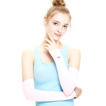 韩国VVC 冰袖防晒袖套防紫外线男女薄长款开车骑行冰丝手臂套 粉红色 均码