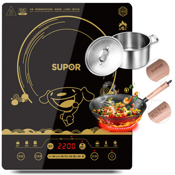 京东商城 苏泊尔(SUPOR)电磁炉 2200w大功率 多档调节 京东纪念款 C22-IH66E8(赠苏泊尔欧式深汤锅+匠芯木柄炒锅)_海淘网