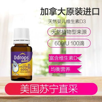 苏宁易购 baby ddrops 婴儿维生素D3滴剂 400IU 90滴/瓶 0-2岁 原装进口_海淘网
