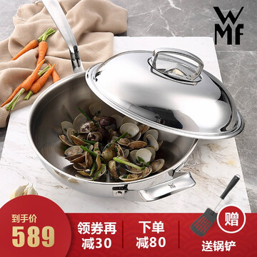 【京东商城】 WMF 德国福腾宝 不锈钢中华炒锅无涂层少油烟炒菜锅 燃气电磁炉通用 不锈钢中华炒锅 30厘米