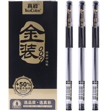 【京东商城】 真彩(TRUECOLOR)金装大容量0.5mm黑色中性笔 12支/盒GP-009
