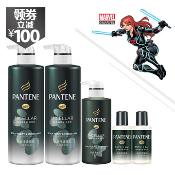 京东商城 潘婷活性炭洗发水无硅油套装净透去屑洗530ml2+护300ml+洗50ml+护50ml(氨基酸 清香型 黑炭能量水 去油)_海淘网