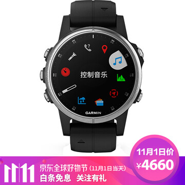 【京东商城】 佳明(GARMIN)fenix5s+ Plus光电心率三星定位健身音乐时尚NFC支付GPS导航户外旗舰级运动手表(黑色银框)