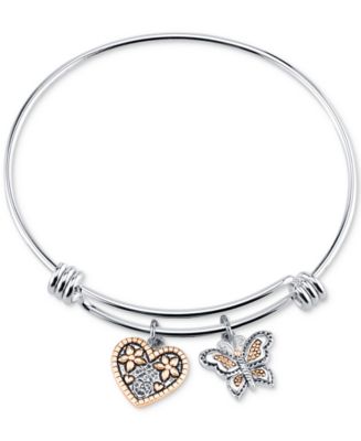 【Macy's】 Unwritten Two-Tone Butterfly Heart "Sisters" Charm Bangle Bracelet - Fashion Jewelry - Jewelry & Watches - Macy's