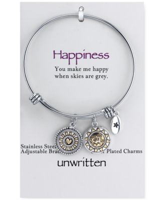 Macy's Unwritten Two-Tone Crystal Accented "You Make Me Happy" Sun Charm Adjustable Bangle Bracelet in Stainless Steel - Bracelets - Jewelry & Watches - Macy's_海淘网