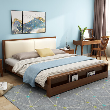 【京东商城】 丽巢 北欧日式床实木床双人床卧室大床TB-109 胡桃色 普通款床 1500*2000