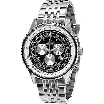 美国亚马逊 Amazon.com: Louis XVI Men's-Watch Artagnan l'acier l'argent Noir Swiss Made Chronograph Analog Quartz Stainless Steel Silver 580: Watches_海淘网