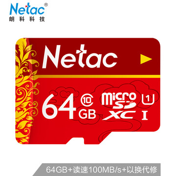 【京东商城】 朗科(Netac)64G 读速100MB/s Class10手机内存卡TF(micro-SD)卡监控摄像存储卡 中国红