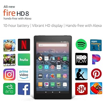 这款Fire HD 平板电脑是采用1.3Ghz的四核处理器。电池的续航能力长达10小时!内置储存分别为16GB和32GB两种。MicroSD插槽可将存储扩展至400 GB。8吋显示屏的分辨率为1280 x 800!