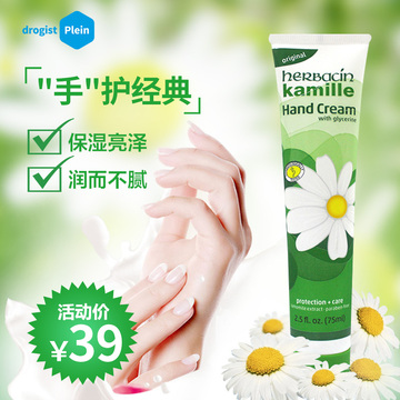 天猫 德国原装贺本清Herbacin洋甘菊小甘菊滋润保湿防裂经典护手霜75ml_海淘网