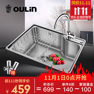 京东商城 欧琳(OULIN) 水槽单槽62452 304不锈钢大单槽水槽套餐 厨房洗菜盆小户型单槽 62452配精铜龙头(620450)_海淘网