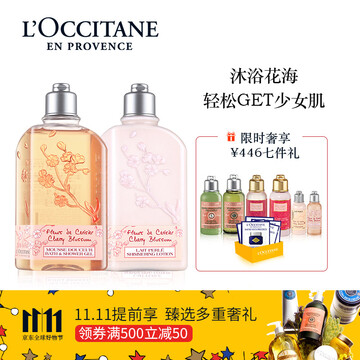 京东商城 欧舒丹(L'OCCITANE)沐浴花海香甜樱花洗护礼盒(甜蜜樱花沐浴啫喱250ml+润肤露250ml)_海淘网