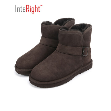 京东商城 INTERIGHT 皮毛一体保暖低筒裸靴雪地靴女靴女鞋 咖啡色 37_海淘网