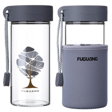 京东商城 富光 多彩可爱单层玻璃杯 男女士便携随手玻璃水杯泡茶杯 带杯套情侣水杯子 380ml 深灰(G1503-380)G1503-380_海淘网
