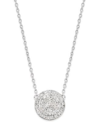 Macy's Macy's Diamond Pave' Cluster Disc Pendant Necklace (1/5 ct. t.w.) in Sterling Silver - Necklaces - Jewelry_海淘网