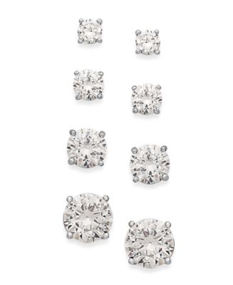 Macy's Giani Bernini Cubic Zirconia Stud Set in 18k Gold over Sterling Silver - Earrings - Jewelry & Watches - Macy's_海淘网
