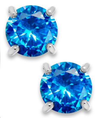Macy's Giani Bernini Blue Cubic Zirconia Stud Earrings in Sterling Silver (2 ct. t.w.) - Earrings - Jewelry & Watches - Macy's_海淘网