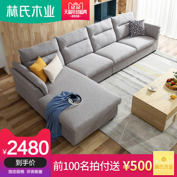【天猫】 林氏木业后现代简约布艺沙发客厅小户型L型贵妃轻奢沙发整装S016
