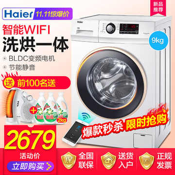 京东商城 海尔洗烘一体机全自动洗衣机9公斤变频家用滚筒洗衣机XQG90U1 WIFI智能控制 空气洗 羽绒洗_海淘网