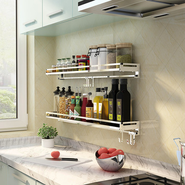 天猫 304不锈钢厨房置物架壁挂式墙上免打孔调味料收纳架子省空间用品_海淘网