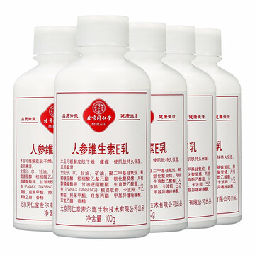 京东商城 同仁堂 人参维生素E乳液身体乳男女身体面部护肤保湿乳缓解皮肤干燥瘙痒滋润 人参维生素E乳100g瓶装 5瓶6928803707138_海淘网