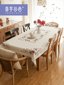 天猫 田园风棉麻布艺桌布美式乡村绣花长方形台布茶几布现代简约餐桌布_海淘网