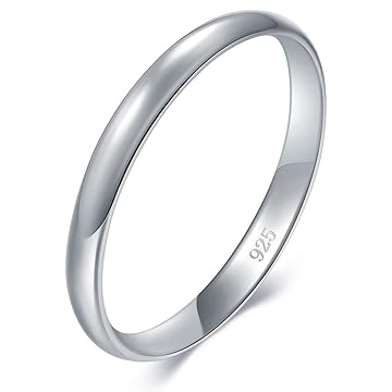 【美国亚马逊】 BORUO 925 Sterling Silver Ring High Polish Plain Dome Tarnish Resistant Comfort Fit Wedding B2mm Ring Size 4.5: Jewelry