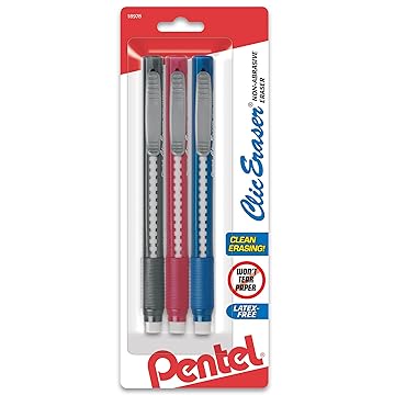 【美国亚马逊】 Amazon : Pentel Clic Retractable Eraser with Grip, Assorted Barrels, 3 Pack (ZE21BP3M) : Pencil Erasers : Office Products