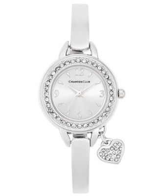 【Macy's】 Charter Club Women's Heart Charm Silver-Tone Bangle Bracelet Watch 26mm, Created for Macy's - Fashion Jewelry - Jewelry & Watches - Macy's