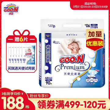 京东商城 大王(GOO.N)加量特惠装 大王天使纸尿裤婴儿宝宝尿不湿天使系列纸尿裤 NB90(小于等于5kg)_海淘网
