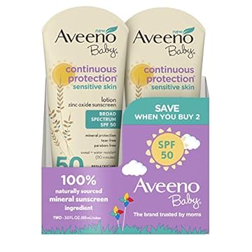 【美国亚马逊】 Amazon.com : Aveeno Baby Continuous Protection Zinc Oxide Mineral Sunscreen Lotion With Broad Spectrum SPF 50, 6 Fluid Ounce : Beauty