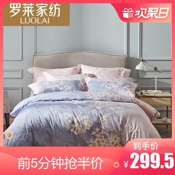 【天猫】 罗莱家纺床上四件套全棉纯棉被套1.8m床双人床单贡缎床品印花床罩