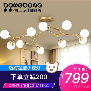 【京东商城】 DongDong東東分子灯星梦客厅吊灯 北欧灯具LED分子灯 风格客卧创意魔豆灯餐厅餐吊灯 【店长力荐】10头 客厅灯 50瓦灯泡款pc罩 星梦分子灯