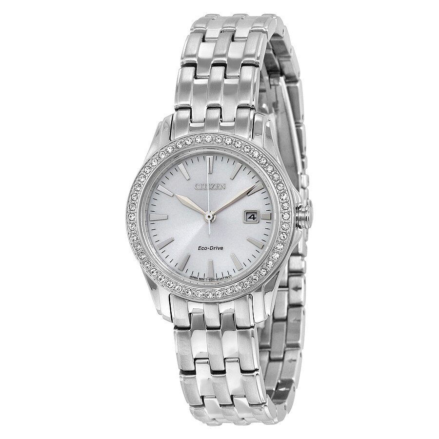 CITIZEN 西铁城 光动能女士腕表 EW1901-58A 水晶镶边银色指针