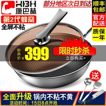 京东商城 德国康巴赫二代炒锅无油烟不粘锅32cm无涂层304不锈钢蜂窝平底炒菜锅电磁炉明火燃气通用 康巴赫2代全面蜂窝款32cm【图片 价格 品牌 评论】-京东_海淘网