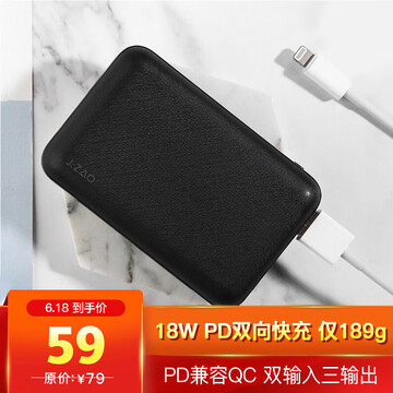 【京东商城】 京东京造 10000毫安移动电源/充电宝 大容量18W PD双向快充 超轻薄便携迷你小巧款黑色 安卓苹果通用可上飞机