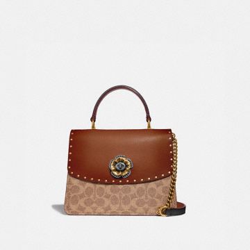 【Coach US】 Parker Top Handle in Signature Canvas With Rivets COACH 53349 B4NQ6