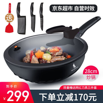 【京东商城】 赛普瑞斯(CEFRUN)黑骑士升级炒锅不粘锅 无油烟炒菜锅平底锅煎锅 厨具套装带盖 燃气灶电磁炉炒锅28cm【图片 价格 品牌 评论】-京东