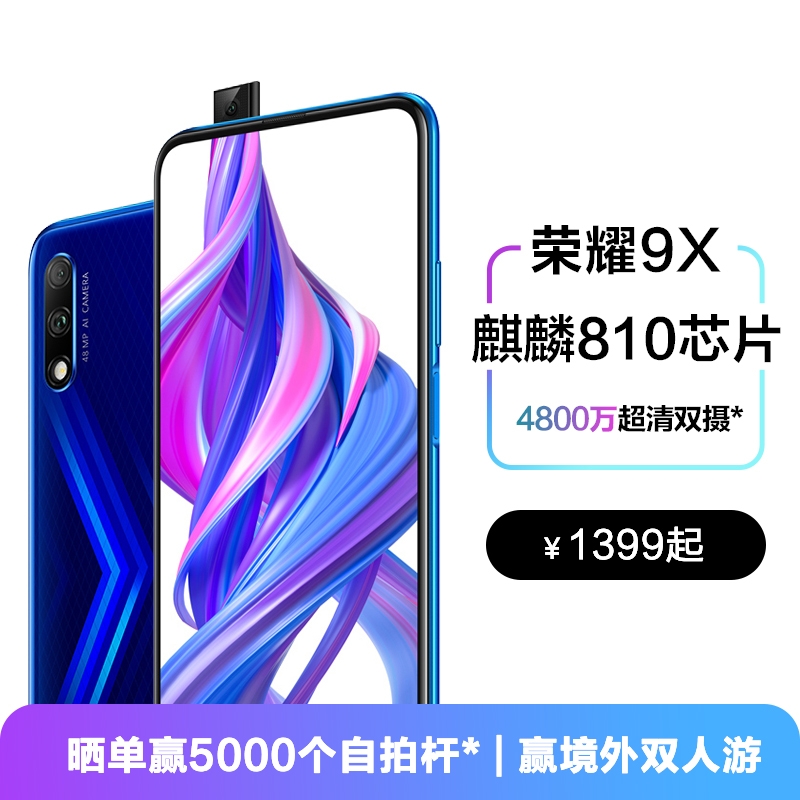 华为官方商城 荣耀9X 麒麟810 4000mAh超强续航 4800万超清夜拍 6.59英寸升降全面屏 全网通 4GB+64GB(魅海蓝)_海淘网