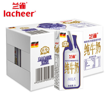 【京东商城】 兰雀(Lacheer) 德国原装进口 德臻系列 脱脂高钙纯牛奶 早餐奶 3.6g/100ml原生优蛋白 1L12盒整箱装