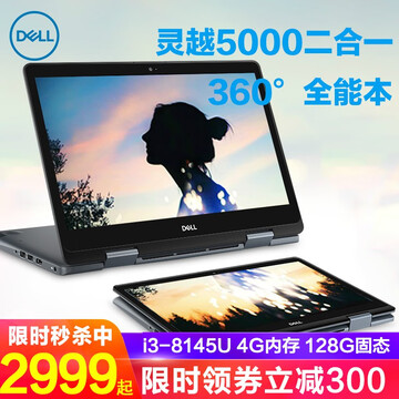 【京东商城】 戴尔(DELL)灵越5000 魔方14MF 14英寸八代i5触摸平板商务超极本学生轻薄本笔记本电脑 i3-8145U 触摸屏 集显灰色 官方标配 4G内存 128G Pci-e固态