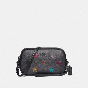 Coach US Sadie Crossbody Clutch in Signature Canvas With Star Applique Snakeskin Detail COACH72285 V5OQR_海淘网