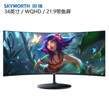 【京东商城】 【创维34G2Q】创维(Skyworth) 34英寸 WQHD 21:9带鱼屏 100Hz FreeSync 1500R曲面显示器 游戏电竞显示器 (34G2Q) 34英寸/WQHD高清/1500R曲面